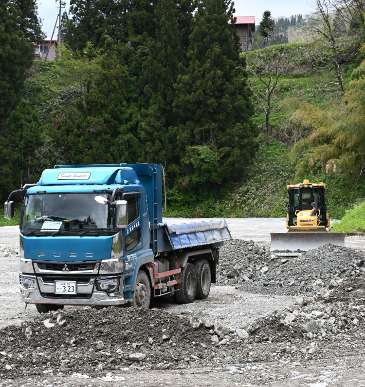 一般土木工事を主体に、大規模機械土木工事及び解体工事、骨材及び盛土材の生産・販売・運搬業務を行っております。