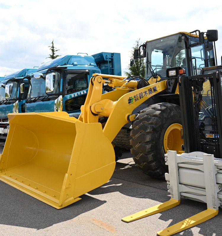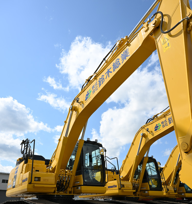 多彩な建設機械をはじめ、2 tダンプトラックから 10 tダンプトラックまで豊富に取り揃えております。